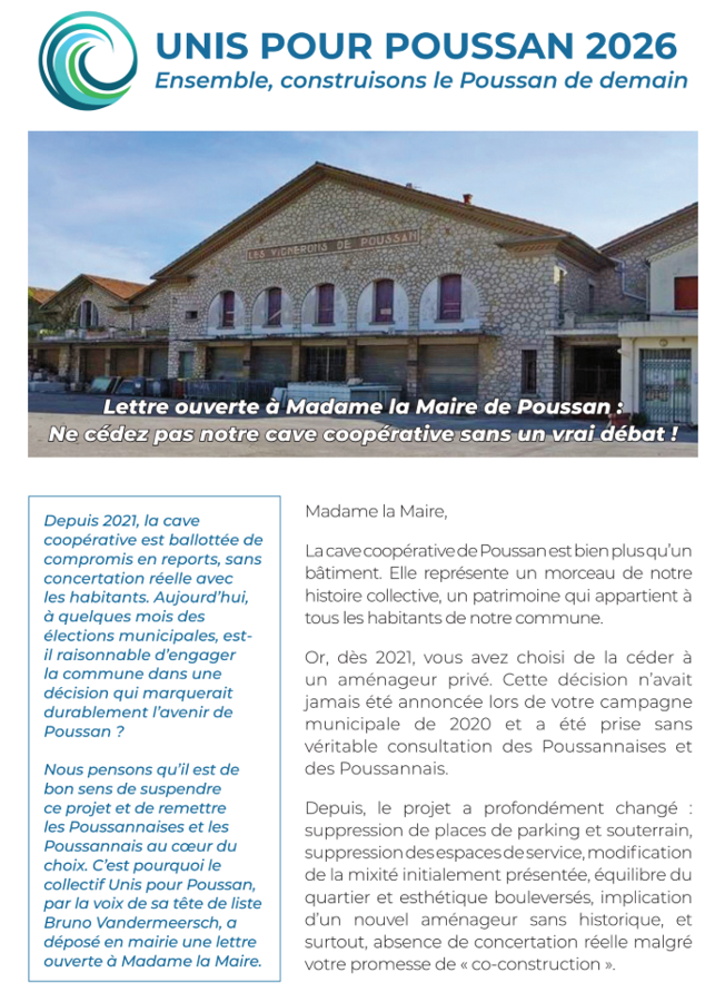 Lettre ouverte à Mme Sanchez concernant la cave coopérative