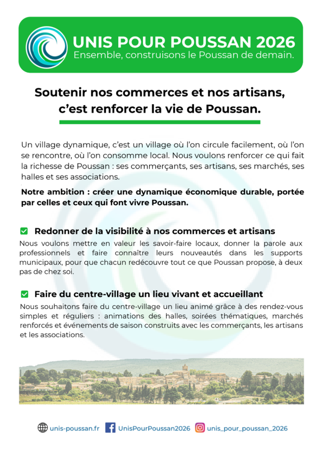 Soutenir nos commerces et artisans, c’est renforcer la vie de Poussan